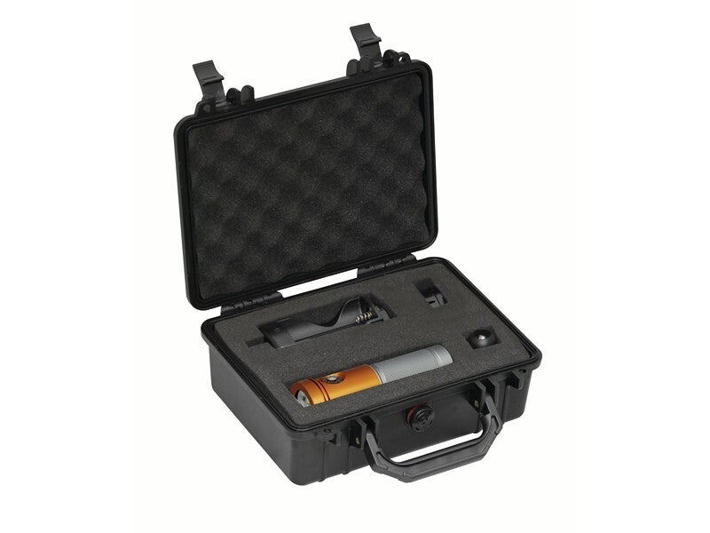 PC101A protective case (size 225 x 180 x 100 mm), 1 AL2900XWP Black Molly VII light, 1 battery charger, 1 Li-ion battery 26650, 1 fixing ball 25 mm, 1 yellow filter to warm up the lighting temperature (FILYELSM), 1 hand strap, 1 spare gasket kit, 1 silicone grease pot